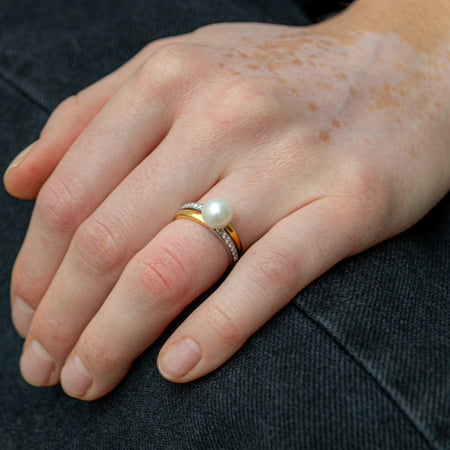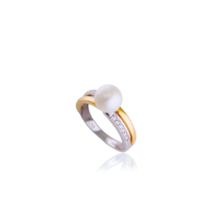 Bicolor ring met parel en diamanten
