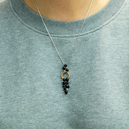 Bicolor hanger met onyx en diamant – elegante druiventros