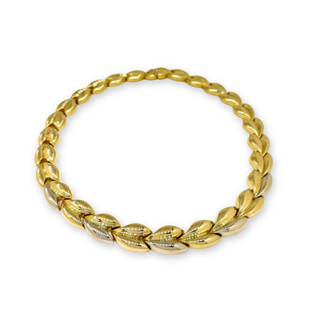 Collier in 18 karaat bicolor goud – bladvormige schakels