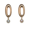 Stijlvolle oorbellen vervaardigd uit warmgeel goud met een mat geborstelde afwerking. Het ontwerp is modern en speels, met een ovale open vorm waaraan een glanzende grijze parel bungelt. De combinatie van de zachte parel en de stoere structuur van het goud geeft deze oorbellen een unieke en tijdloze uitstraling. Perfect voor zowel dagelijks gebruik als speciale gelegenheden.