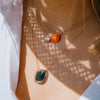Halsketting met vierkante zwarte steen in geelgouden zetting aan fijne ketting.