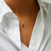 Een klassieker met karakter: een diepgroene smaragd in elegante peervorm, omlijst door fonkelende briljanten.