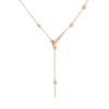 Deze frisse en eigentijdse ketting in 18kt roségoud bestaat uit speelse boules die elkaar lijken te achtervolgen, en is een toonbeeld van onze onmiskenbare veelzijdigheid. De haaksluiting, verfijnd afgewerkt met een subtiel diamantdeta il, verenigt esthetiek en functionaliteit: ze opent en sluit als een veer, waardoor de ketting op verschillende manieren gedragen en geïnterpreteerd kan worden.