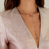 Je kunt kiezen voor een gladde, klassieke look door de sluiting aan één van de eindboules te bevestigen, of voor een gedurfdere stijl door de ketting hoger in de hals te dragen. Een veelzijdig en licht juweel dat zich moeiteloos aanpast aan al jouw facetten!