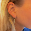 Elegante bicolor creolen waarbij warm geelgoud en witgoud samenkomen in een modern ontwerp. De lange, open hanger is volledig bezet met sprankelende diamanten die subtiel meebewegen voor een verfijnde schittering. Een eigentijdse oorhanger die zowel minimalistisch als luxe oogt.