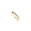 Elegante geelgouden ring bezet met afwisselend smaragd en diamant. De levendige groene smaragden worden prachtig aangevuld door de briljante schittering van diamant, wat deze ring een verfijnde en tijdloze uitstraling geeft. Perfect om solo te dragen of te combineren met andere ringen voor een speels, luxueus effect.
