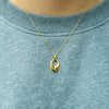 Deze elegante gouden hanger heeft een vloeiend ovaal ontwerp dat beweging en verfijning uitstraalt. De fonkelende zirkonen volgen de zachte lijn van het ontwerp en zorgen voor een subtiel, luxueus accent. Een tijdloos juweel dat kracht en elegantie perfect in balans brengt — de ketting is niet inbegrepen.