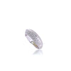 Een elegante witgouden ring met een brede bovenzijde, volledig pavé bezet met fonkelende diamanten. Het verfijnde ontwerp vangt het licht vanuit elke hoek en straalt pure luxe uit. Perfect voor wie houdt van tijdloze klasse en schitterende details.